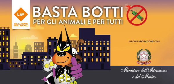 LAV e Ministero dell’Istruzione e del Merito sono fianco a fianco nel proporre per il settimo anno consecutivo “Basta Botti, per gli animali e per tutti”, una iniziativa rivolta alle Scuole Primarie e Secondarie di Primo Grado per prevenire i danni da esplosivi che sono una triste ricorrenza nel periodo delle festività natalizie.