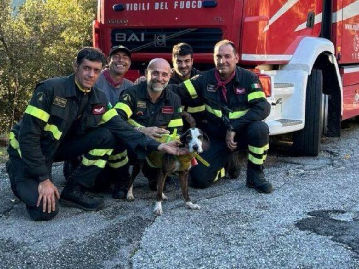 Cane precipita nel burrone per 100 metri. I vigili del fuoco salvano lui e l’uomo che cercava di aiutarlo