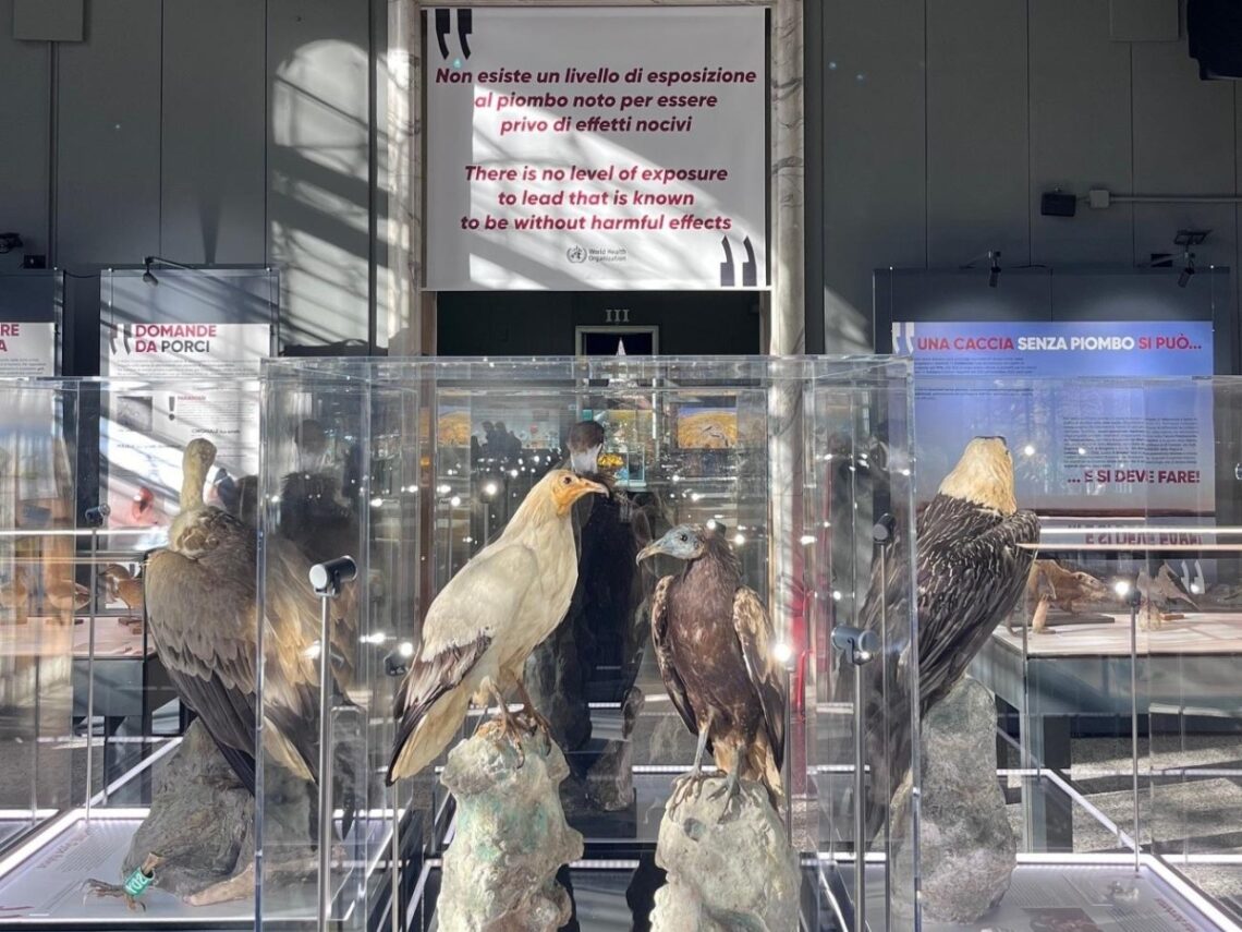 La mostra – che nel corso di questi anni è stata ospitata in diverse sedi in tutta Italia e che giovedì pomeriggio verrà presentata da una guida di eccezione, l’attore Giovanni Storti, nell’iniziativa «Meglio Storti che a piombo» -, racconta il ciclo del piombo, spiega le sue conseguenze sulla salute di animali e persone e sull’ambiente, le possibili alternative. È stata allestita in un’ala che ospita molti dei 2.600 reperti di rapaci e volatili che fanno parte del patrimonio del museo milanese. Animali in alcuni casi davvero maestosi, spesso già a rischio per altre cause (bracconaggio, riduzione degli habitat), che sono predatori apicali e controllano i cieli, ma che soccombono di fronte a questo nemico invisibile. Uno studio congiunto di Ersaf, Parco nazionale dello Stelvio, Provincia di Sontdio, Izs Lombardia e Emilia Romagna, Cnr-Irsa e Ispra su quattro specie di rapaci – aquila reale, avvoltoio monaco, grifone e gipeto – ha rilevato un’esposizione clinica o subclinica al piombo nel 67% dei 281 esemplari analizzati. Di questi, 53 erano sul territorio lombardo e la percentuale di quelli contaminati è risultata del 73,6%. Il piombo diffuso in natura si diffonde senza limitazioni e arriva dunque anche nelle aree protette.