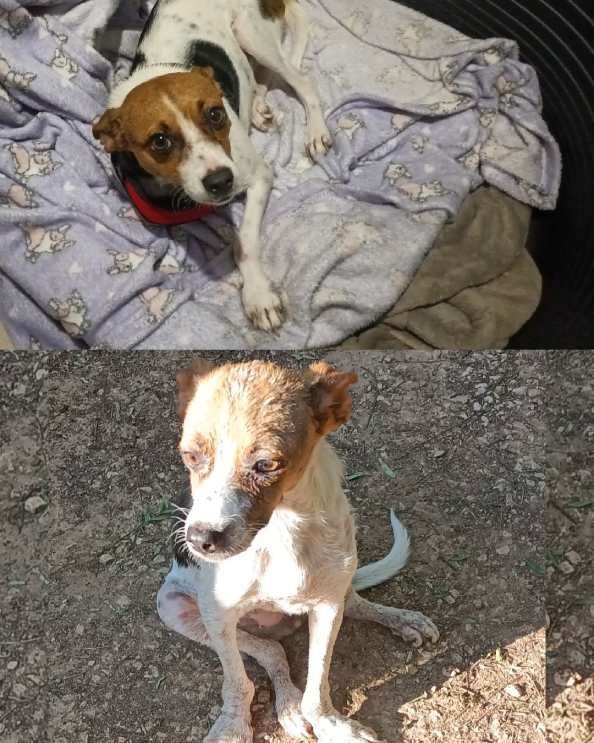 Dopo il ricovero in clinica veterinaria, è stata avviata subito la fluidoterapia, è stato introdotto cibo specifico per il suo stato di salute e ha preso avvio la terapia mirata per la leishmaniosi. Le foto scattate nei primi giorni mostrano un animale estremamente debilitato, con il corpo segnato dalla magrezza e dalla fatica.