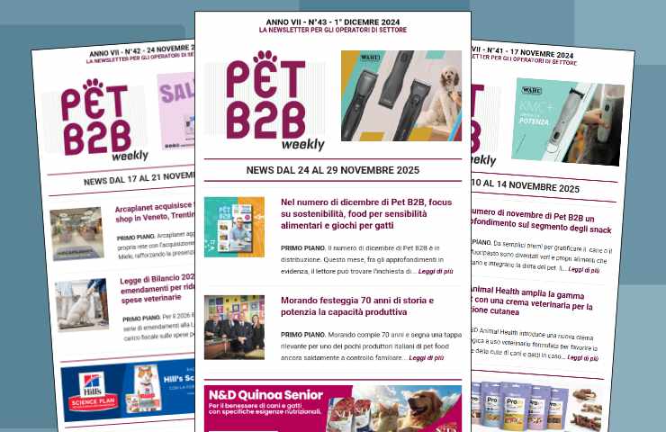 È disponibile il nuovo numero della newsletter Pet B2B Weekly dell’1 dicembre 2025, con le notizie dal mercato pet degli ultimi giorni.