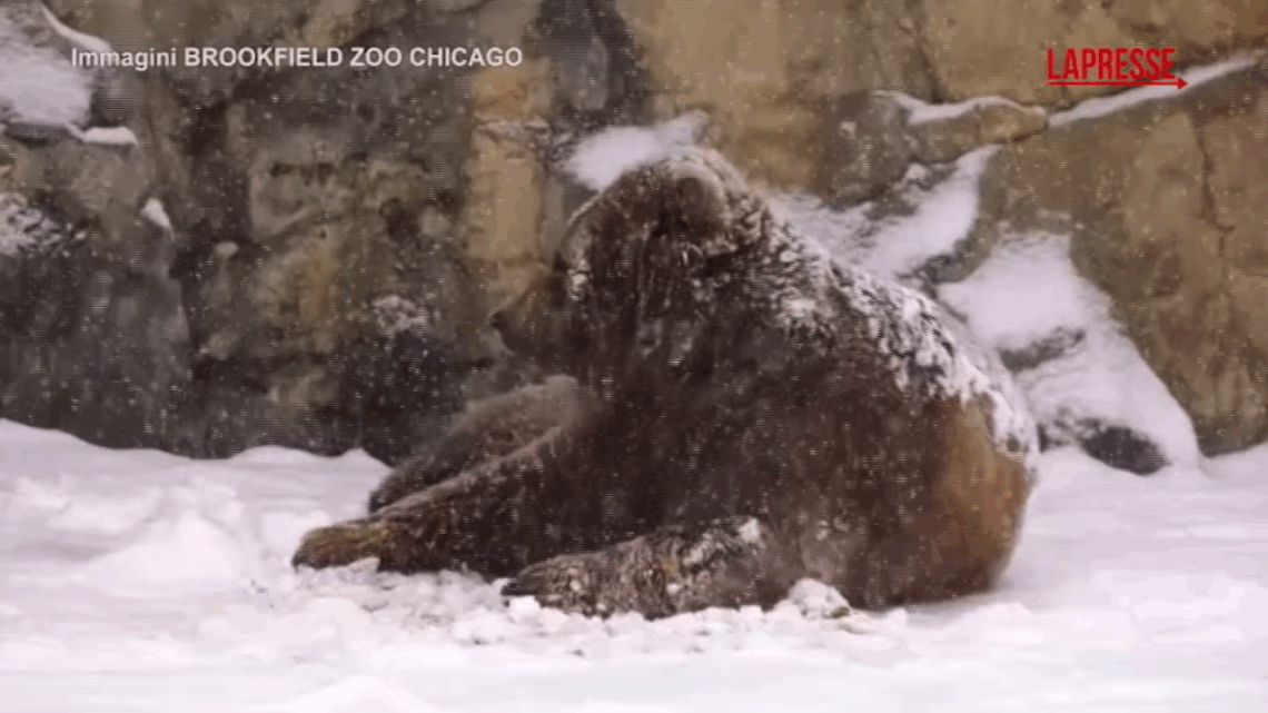 La neve ha ricoperto Chicago, compreso lo zoo della città. Il maltempo tuttavia non sembra aver disturbato gli animali, tra cui l’orso bruno Tim che si è rotolato nella neve fresca.